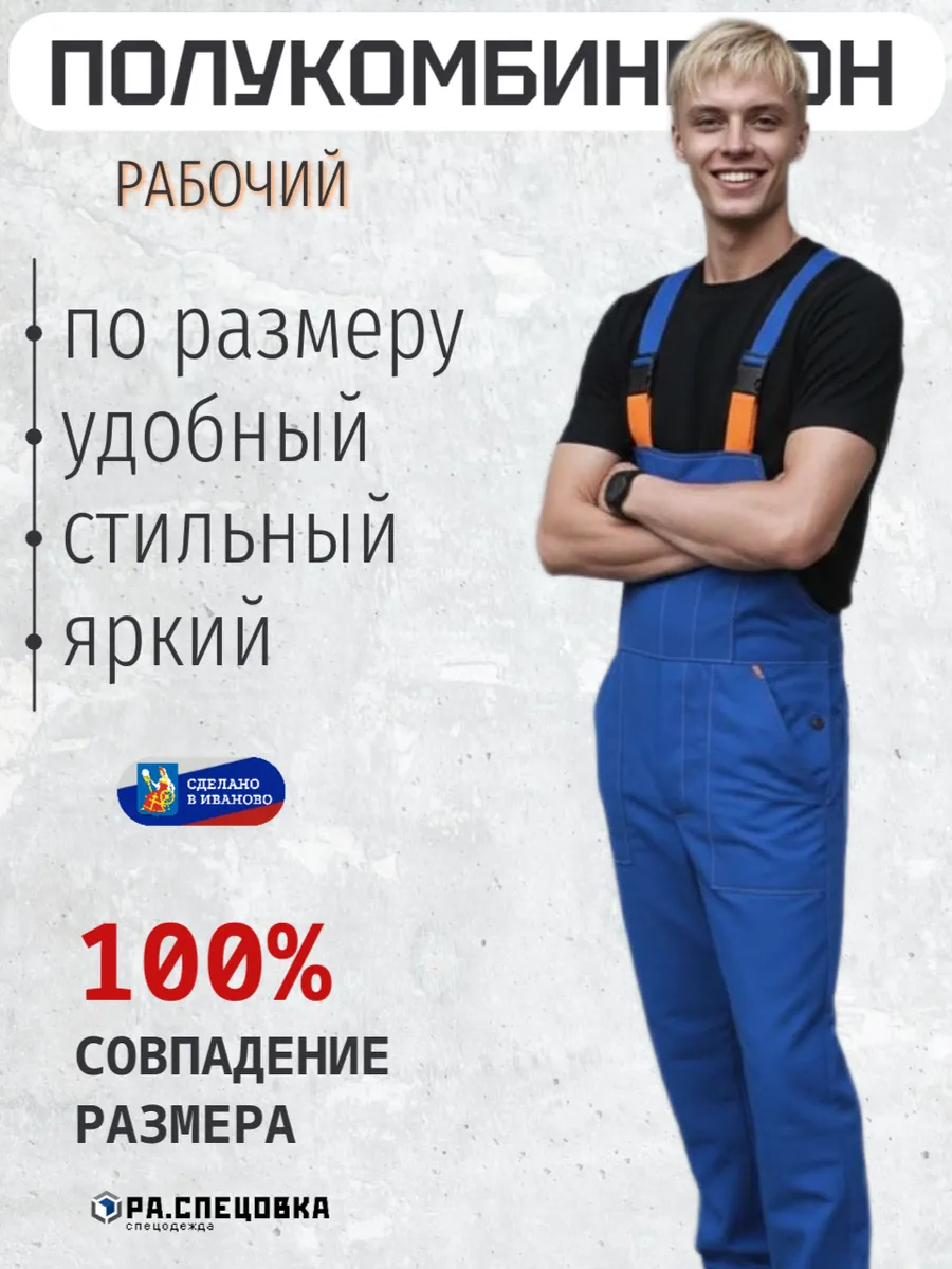 Полукомбинезон мужской голубого цвета — это идеальная надежная спецодежда для профессионалов, работающих для летних и демисезонных работ, таких как шиномонтаж и другой работы.