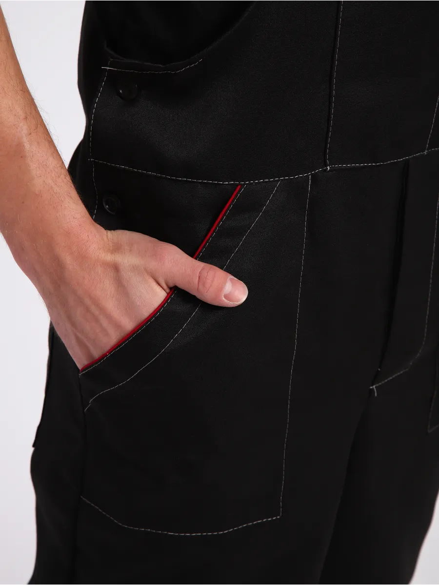 Эта мужская рабочая одежда может быть дополнена курткой, создавая полноценный комплект для демисезонного использования. Полукомбинезон сочетает в себе стильный внешний вид и высокую функциональность, что делает его незаменимым элементом гардероба для профессионалов.
