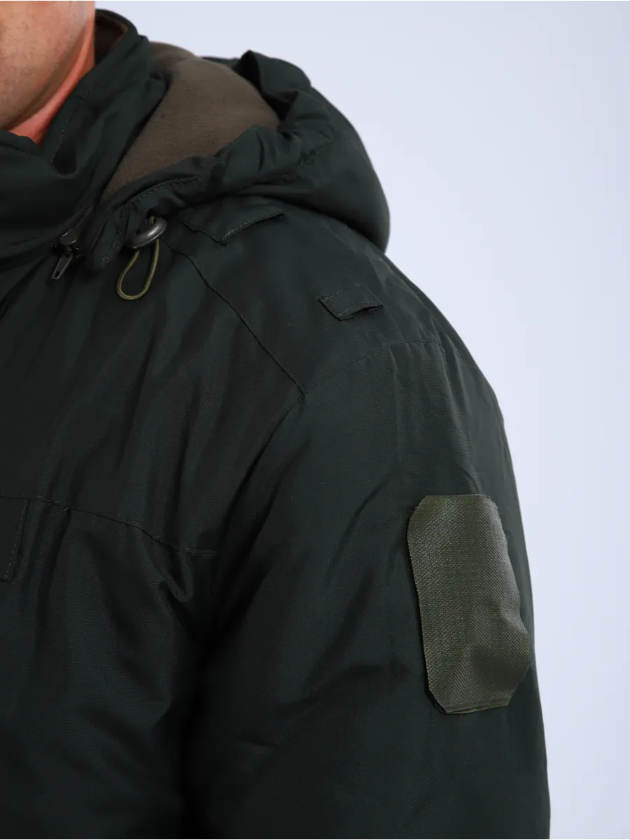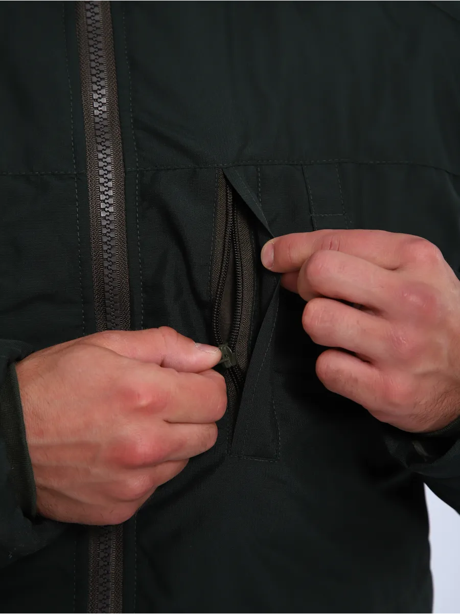 Куртка старого образца для росгвардии. Демисезонная темно-зеленая куртка выполнена из мембранной ткани “микро рип-стоп”, чрезвычайно прочной к истиранию и механическим повреждениям и при этом пропускающей воздух, не создавая парникового эффекта. Цвет: Сосна.