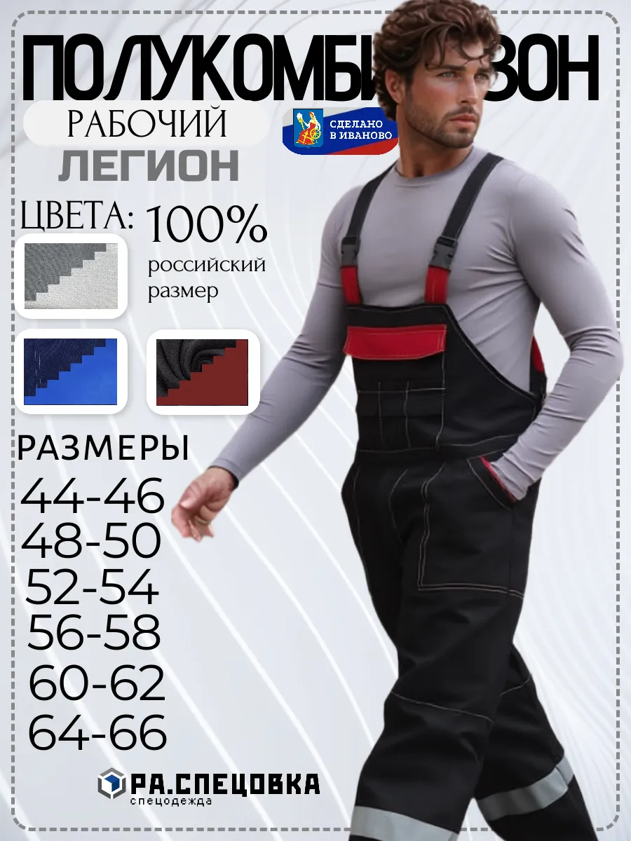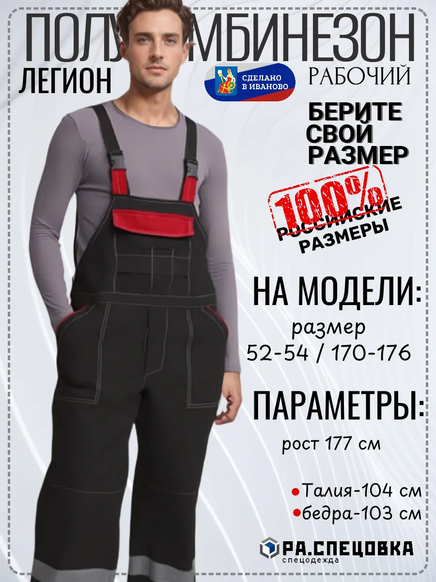 Мужская спецовка доступна в больших размерах (60-68), что позволяет подобрать идеальную посадку для представителей крупной комплекции. Регулируемые лямки обеспечивают комфорт и свободу движений, а усиленные швы гарантируют долговечность.
