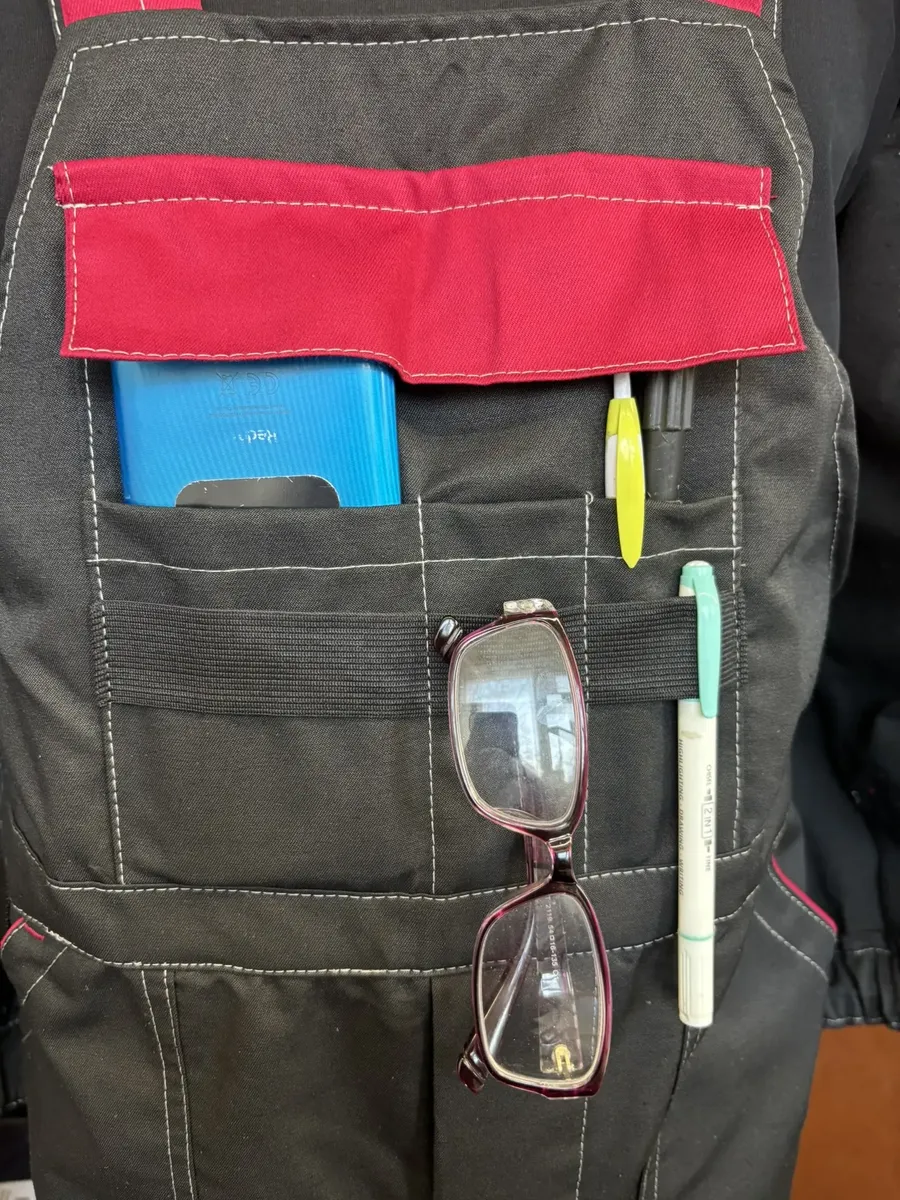 Функциональные карманы полукомбинезона позволяют хранить необходимые инструменты и аксессуары под рукой. Большой карман на липучке в верхней части идеально подходит для смартфона и других мелочей. Глубокие боковые карманы и светоотражающие вставки снизу добавляют удобства и безопасности в рабочей среде.