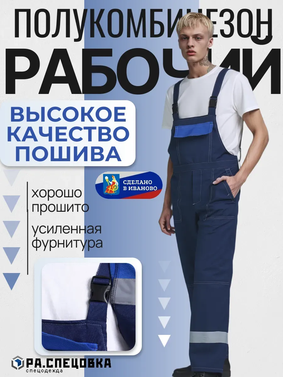 Выбирая этот мужской полукомбинезон, вы получаете надежную защиту и комфорт в любых рабочих условиях, будь то лето или осень. Он станет вашим любимым выбором для отделочных работ, а также для шиномонтажа и других задач, требующих качественной спецодежды.